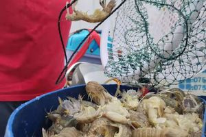 【沙白咸菜汤、清蒸金昌鱼、姜葱炒蟹、酱爆鱿鱼、椒盐虾、粉丝蒸扇贝、蚝仔煎蛋、炒蚬仔、咸鱼茄子煲、青菜、白饭】