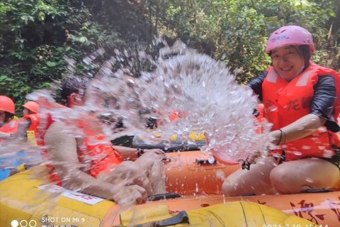 13:00 - 15:30 从古龙九瀑下去前往漂流。古龙峡全程漂流,它是中国漂流的巅峰之作,是浪尖上的过山车,全程6.1公里,落差达378米,是全国落差最大的漂流赛道。