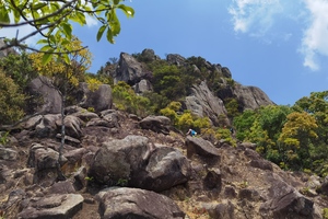 12:45冲顶,也是鸡笼山风景最漂亮的路段,沿着石头山脊线网上攀登,驻足赏景拍照,这里各种奇形怪状的石头,鸡笼山号称惠州小黄山