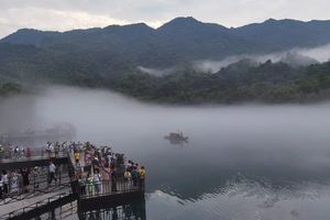 每到夏秋,东江湖下游的蒙蒙水汽收在峡谷间