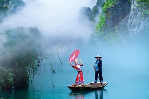 我们徒步至峡谷底部,乘坐网红「漂浮小船」之旅,悠闲地荡漾在碧水青山之 中。漫山遍野的映山红,倒影在河面的一艘艘木栈,漂浮在山水一体的清江河面, 水下鱼儿慢悠悠的游过船底,遗世独立的样子。快,抖音视频、朋友圈走起来!
