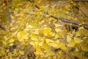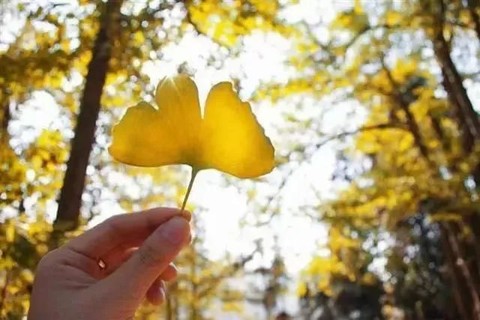 在朝日照射下金灿灿的银杏叶,簇拥在粗壮的枝条上,微风轻抚,万千片黄叶轻颤,犹如万千彩蝶飞舞;站在银杏林中,透过冬日灿烂阳光,银杏叶散发出道道璀璨金光,在秋冬中添上一番色彩。