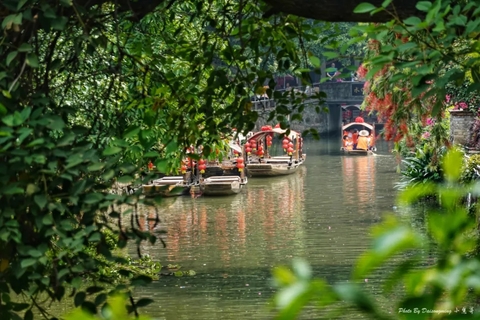 也可以选择坐上乌篷船游览一番水乡风景!