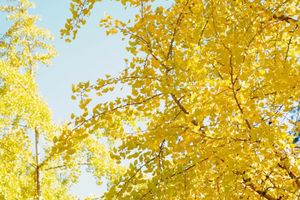 在朝日照射下金灿灿的银杏叶,簇拥在粗壮的枝条上,微风轻抚,万千片黄叶轻颤,犹如万千彩蝶飞舞;站在银杏林中,透过冬日灿烂阳光,银杏叶散发出道道璀璨金光,在秋冬中添上一番色彩。