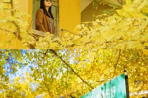 黄金大道两边笔直的银杏,泛着金黄的树叶,独具生态特色的银杏飘韵