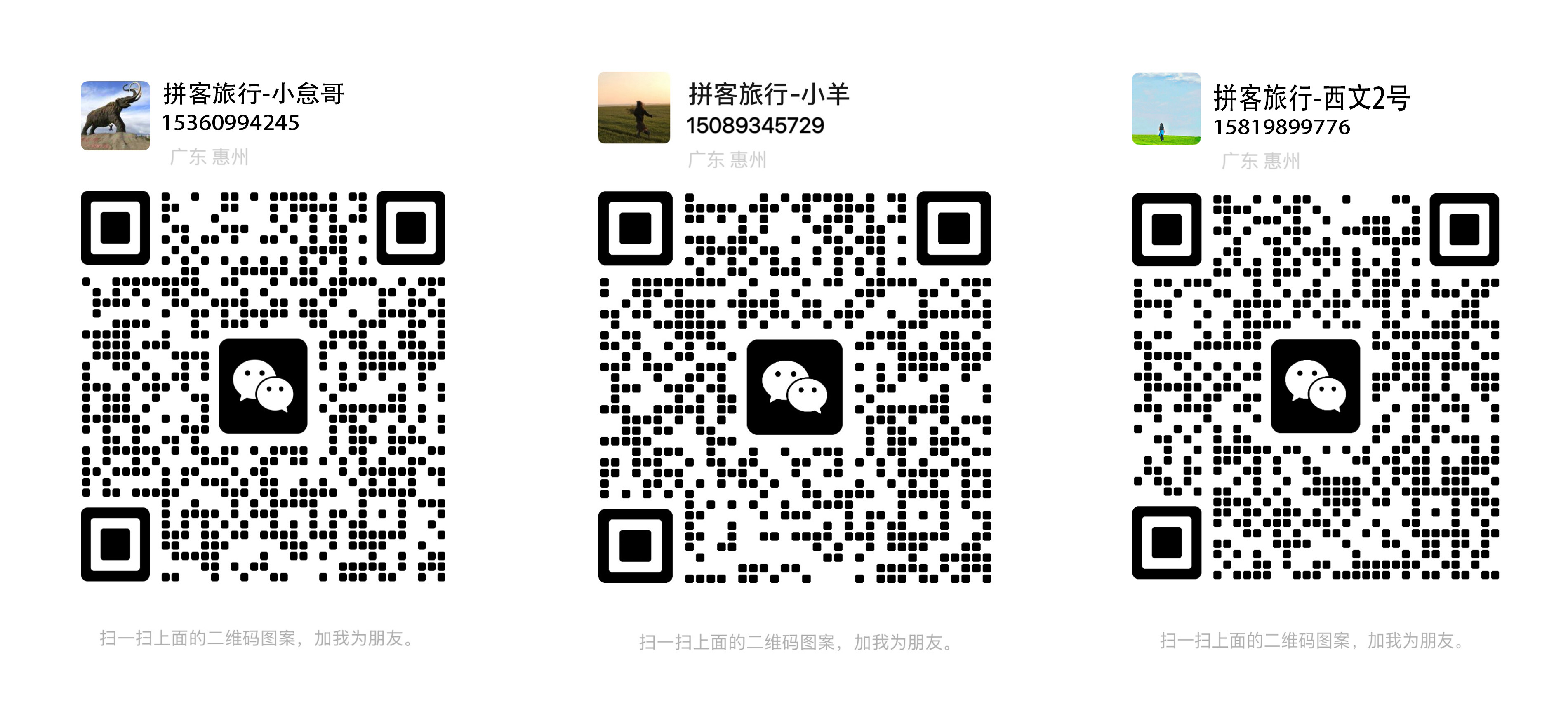 注:若您的出行日期和以上时间不一致,如果你5人以上想走这条路线可以提前一个星期告诉我们,我们根据你的时间来拼!
