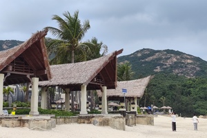 沙滩很大,呈月牙状,长约1000米,宽大概有50米。这里的沙质特别好,沙粒很细很白,当地人为此把这个沙滩称为“银滩”。