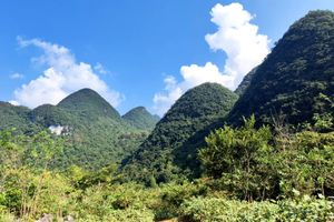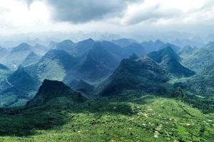 从山顶俯瞰,圆锥形的峰丛,一望无际