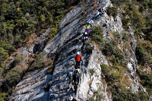 12:00开始进入山脊线“刷牙”路段,行走在怪石嶙峋的排牙山上,一览众山下
