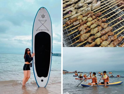 4、往返快艇、橡皮艇游玩、救生衣、赶海工具、提供太阳伞,凳子,桌子,海上魔毯,淡水冲洗;
