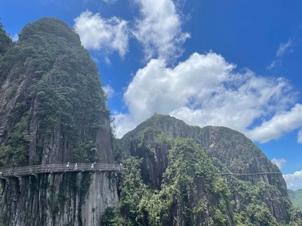 10:00 深度游览五指峰景区,漫步悬空栈道,南中国最长的悬空栈道,总长约8公里;