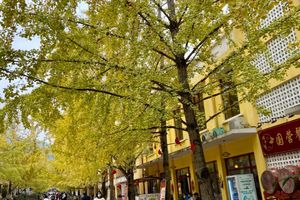 黄金大道两边笔直的银杏,泛着金黄的树叶,独具生态特色的银杏飘韵