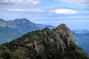 上下岩,是位于惠东、紫金、陆河交界处的高潭镇中洞村的两座石头山,山脊通体为花岗岩,布满了各种各样的大石头。上岩石海拔1077米,下岩石海拔约888米,两者遥遥相对,东边是五马归槽(海拔1054米)。