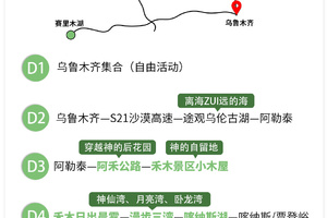 其中4晚携程四钻酒店,2晚景区住宿,1晚贾登峪或喀纳斯住宿。