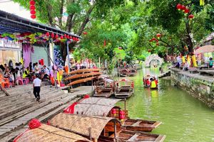 乘一叶扁舟,穿梭在蜿蜒的河道上,两岸的绿意盎然,古榕垂荫,仿佛进入了一幅流动的江南水墨画。