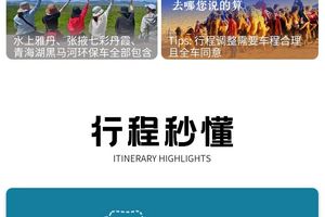 4、门票:茶卡盐湖(青海省海西洲是浙江援建,浙江籍游客凭有效证件游览茶卡盐湖可免门票,现场退还门票)、青海湖黑马河观景台环保车、水上雅丹+环保车、大柴旦翡翠湖、鸣沙山月牙泉、七彩丹霞+环保车