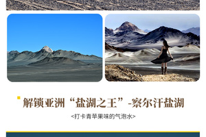 【景点】所列景点首道大门票:大柴旦翡翠湖、茶卡盐湖、察尔汗盐湖、鸣沙山月牙泉、张掖七彩丹霞。